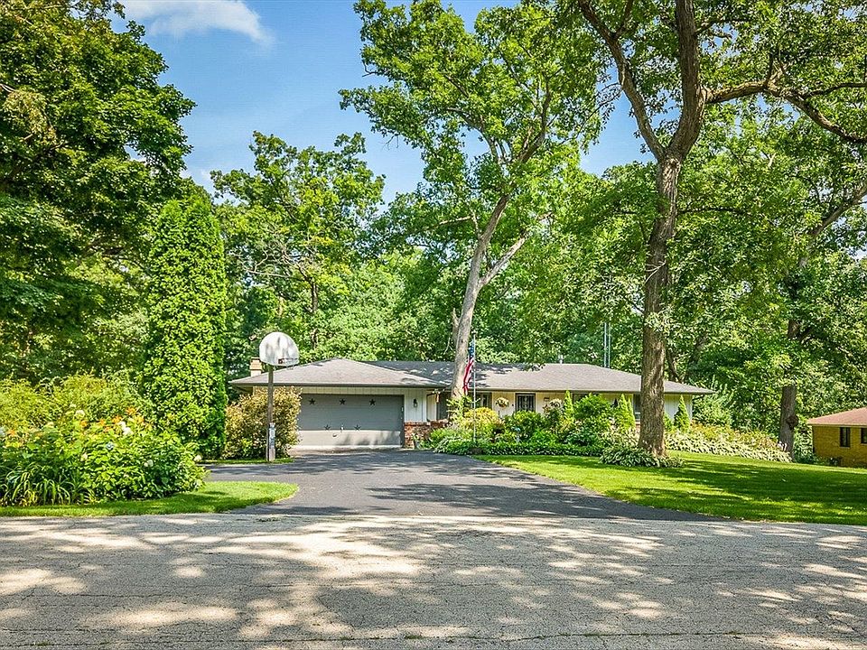 Welcome home to this charming 3 bedroom, 2 bath ranch nestled on a beautifully landscaped 0.59 acre lot with mature trees and a handy storage shed. Designed for easy, one-floor living, this open-concept home features a spacious eat-in kitchen and a family room with a fireplace—perfect for gatherings or quiet nights in. The sunny 3-season porch opens to a large deck, ideal for relaxing or entertaining while enjoying the natural surroundings. The first floor primary offers convenience and comfort, while the finished lower level adds flexible living space for a playroom, home office, or media room. 2024 Culligan Whole Home Water Filter System. An attached 2 car garage completes this well-maintained home in a peaceful, private setting. Don't miss this one!
