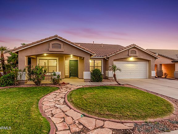 Spacious four bedroom home on a quiet, interior, premium corner lot. Home features living and family rooms, vaulted ceilings, new carpet, new blinds and new exterior paint and newer HVAC system (replaced 2023). Kitchen is open to the family area and includes center island, Corian countertops, walk-in pantry, eat-in kitchen and diagonal ceramic tile. Large main suite with French door exit to the patio, double sinks, walk-in shower and large walk-in closet. Extended covered patio, front porch, and nicely landscaped. Close to parks, the 202 freeway, shopping, dining and more.