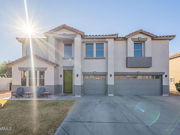 Beautiful Mesa, AZ 5 bedroom 3 bath home priced to sell in the desirable area of Mountain Ranch! Large open living room and eat-in kitchen plus family room. Kitchen boasts upgraded cabinetry, Large loft and bedrooms! Master bath offers a dual sink vanity and separate soaking tub. Huge backyard Cool off under your covered patio or catch some rays in your pool! New paint throughout! Carpets will need to be replaced.