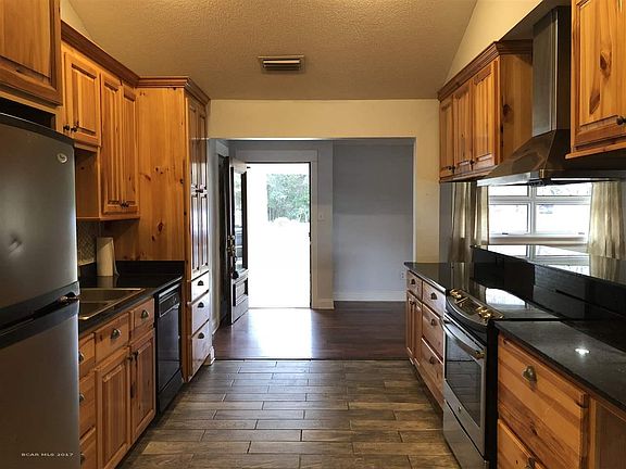 This 3 bedroom, 2 bathroom home sits directly on Fish River with a sizable lot with a gazebo, dock and a boatslip as well as a pool. Home also has a large sunroom overlooking the water with a large fireplace. The kitchen has stainless steel appliances and is open to the living room where there is a second large fireplace. This is a great house located on a beautiful piece of property! Available for short or long term lease; pets allowed.