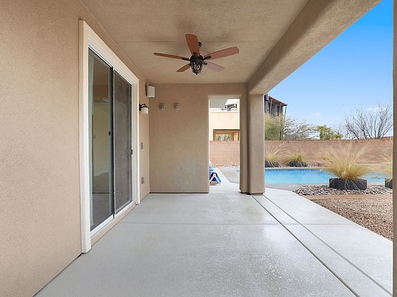 Immaculate home located in highly desired Allerton Park at Summerlin. Chef's kitchen boasts granite countertop and eat at island, all stainless steel appliances, upgraded light fixtures with recessed lighting, custom backsplash and cabinetry. Large room downstairs is wired for surround and can be used as a 5th bedroom or den. Primary bedroom has gorgeous balcony overlooking the mountains, custom lighting and window coverings. Ensuite is truly an oasis! Granite counters and makeup vanity on one side of the bathroom and another vanity with large counter on the other. Gorgeous tile work accentuates the large soaking tub and custom walk in shower. Spacious walk in closet attached. The backyard absolutely adds the finishing touch to this immaculate home. Covered patio overlooks the glistening walk in pool. Waterfall provides a relaxing ambiance. This home has so many upgrades and will not last! Make it your oasis today!