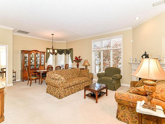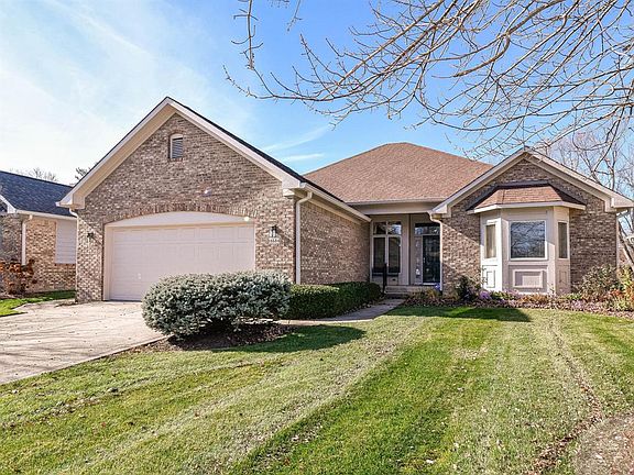 This LOCATION is a 10! Across the street from the Monon Center and Monon Trail access. Super close to all the fun stuff Carmel has to offer like Restaurants, Shopping, and Events. This fabulously maintained Ranch maintenance-free 2 Bedroom + Den Home is ready for you to move right in. Blinds, Washer, Dryer, and Two Refrigerators stay with the house. Irrigation system for a gorgeous green lawn. So many wonderful finishes in Kitchen and BOTH Full Baths with ceramic tile and solid surface countertops. Easy access walk-up attic space for tons of extra storage. Nice sink in laundry perfect for pets or crafts. Custom window bench in the second bedroom. Beautiful hardwood floors in the entry. A BIG screened-in porch for relaxing or entertaining.