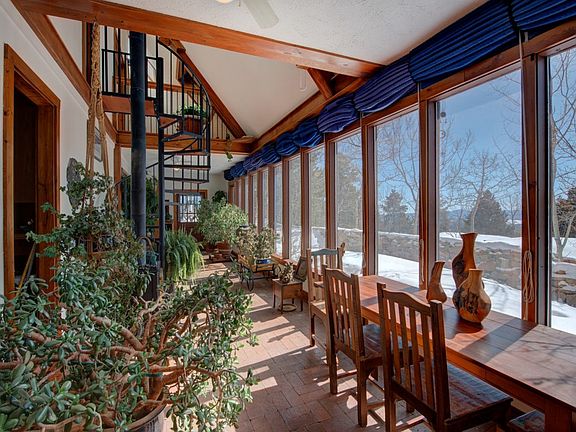 Less than 10 minutes from 285 and you are home to your own private oasis with main level living and spectacular views. Both active and passive solar systems are the cornerstones of this energy efficient home. Entering into a large brick-floored sunroom with a Southern exposure wall of windows, pellet stove, and vaulted ceilings, you'll find the perfect setting for your house plants and to warm yourself up from this winter's chill. Beautiful bamboo floors with solar radiant heat extend through the living room and main floor master, which also features a walk-in cedar closet. The kitchen features an island for plenty of counter and prep space, a double oven, and a walk-in pantry. Laundry is conveniently located on the main level in the attached 2 car garage. Going up to the second floor, you'll find a continuation of the bamboo floors, 2 additional bedrooms, each with its own loft, and a ¾ bath. The Pikes Peak views from the lofts will truly take your breath away. Outside you'll enjoy surprising privacy for the lot size. The back yard is green and lush in the spring and summer and has a greenhouse plus 2 cold frames perfect for your vegetable garden. A huge deck leads to the hot tub and is also the ideal setting for outdoor entertaining. New paint throughout home, both bathrooms recently remodeled with new tile and sink. Centurylink DSL provides approximately 7mg during daytime use, 4.5-5mg during evening peak hours.