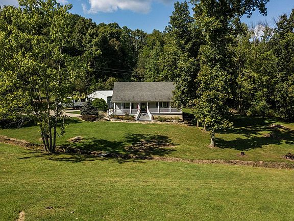 This cozy Cape Cod is nestled on a spectacular 3.5 acre park-like setting. Home features an open floor plan w/ soaring 16' ceilings in the great room, 1st floor master suite and an additional large bedroom on the 1st floor, 2 additional bedrooms, full bath and loft on second floor. Beautifully finished walk-out lower level with stone fireplace in the family room with surround sound for your home theatre, spacious home office/flex space with french doors, huge laundry room, and large half bath. Lower level also has a kitchenette that is great for entertaining! 2+ car detached garage/outbuilding with plenty of space, home generator.