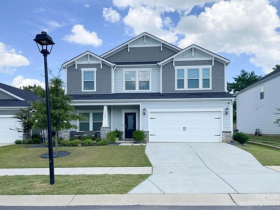 Craftsman style home with rocking chair front porch for enjoying the neighborhood activity. Spacious fenced in back yard for plenty of room for playtime, cooking out, or just relaxing. Enter the spacious home with a dedicated office/flex space with French doors. Open floor plan with a huge kitchen island, granite counter tops, back splash, gas range and pendant lighting. Kitchen and dining space opens to a large great room with a stone faced gas logs fireplace. Upstairs offers three secondary spacious bedrooms with a large loft/flex space. The primary bedroom has a tray ceiling and opens to a primary bathroom with a stand up shower, garden tub, dual vanity and an extensive walk-in closet. Home is in popular Huntersville with easy access to interstates for work commutes or the lake for playtime. Community amenities offer a cabana, playground and outdoor pool.