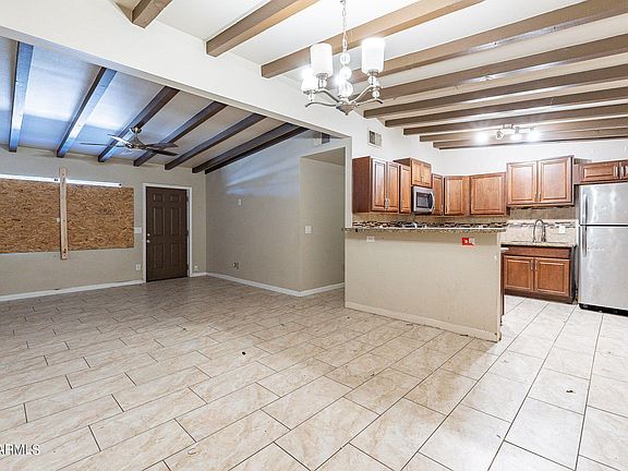 Welcome to the heart of Arizona living! This 4-bedroom, 2-bathroom home offers over 1400 square feet of living space, embodying the charm of the Southwest with its ranch-style design. Tile and laminate flooring throughout ensures easy maintenance and cool comfort, perfect for those warm desert days. Kitchen boasts hard surface counter tops and stainless appliances. Spacious backyard, providing ample room for outdoor activities. Nestled in a tranquil neighborhood, this property holds immense potential - Don't miss out on the chance to make this Arizona dream home your own, and let your imagination soar as you envision the possibilities!