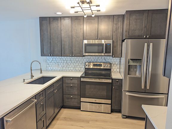 Stunning fully remodeled end-unit townhome, backing to a serene park. The spacious master suite, complete with a private bath, is located on the upper level, along with a second bedroom and a full bath. The main level features a convenient half bath for guests. The lower level offers a third bedroom and a versatile rec room, perfect for entertainment or relaxation. Every detail has been updated, including a brand-new kitchen with sleek cabinetry, quartz countertops, and stainless steel appliances. The home boasts fresh paint, new flooring, and plush carpeting throughout. Enjoy the convenience of a large, attached one-car garage.