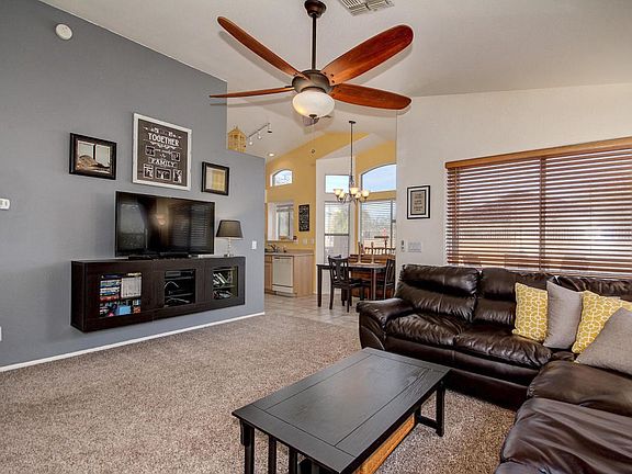 Gorgeous single level home in Mesa! Soaring ceilings and a welcoming color palette throughout. Eat in kitchen is complete with a plethora of custom cabinets, ample counter space, and black/stainless steel appliances. Master suite has plush carpet with ceiling fan and picture windows. 3/4 bathroom with extended single sink vanity. Backyard features a covered patio with lush green grass and plenty of room for entertaining. Brand new carpeting and exterior paint is only a couple years old. This home is sure to go quick, so come see it today before it's too late!