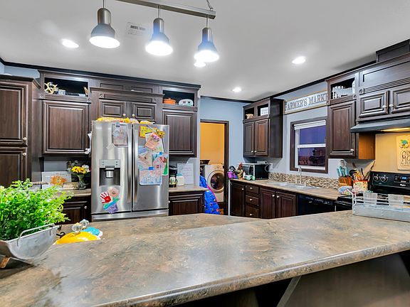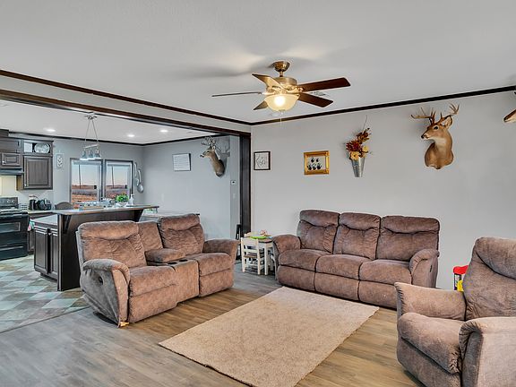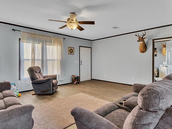 This 57 Acres is fully fenced with 3 PHASE ELECTRICAL. Outside of city limits. This land can accommodate hunting, cattle, horses, or is prepared to have more buildings added to it. The home offers 4 bedrooms and 2 baths with large living room and updated flooring. The open concept floor plan makes cooking in the kitchen and being involved in the living room or dining room activities possible. There is an island and extra storage throughout the kitchen. The master offers an on suite bathroom with large jetted tub and great closet space. Enjoy beautiful sunrises and sunsets from the porch of this beautiful property. There is an additional 100 Acres split by Hwy 152 that can be purchased.