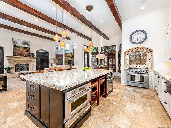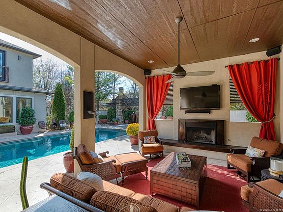 Gracious custom Sequoyah Hill Mediterranean w/ wrap around views to courtyard gunite pool. 3 Fireplaces, architectural ceilings, trim, some hickory wood floors, granite center isle, professional Jennaire Kitchen, master suite w/ steam shower. Study and large guest/game/MIL or studio down. Outdoor living, 2 water features. Ensuite guest Bedroom up w/ game and 2 pullman bedrooms. Also walk to area clubhouse. Pool, ponds and trails. Jenks SE school!