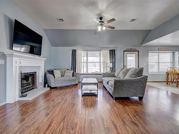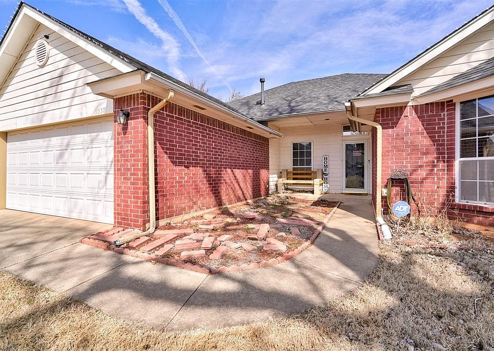 Welcome to this spacious 3-bed, 2-bath home, located on a large corner lot of the Oakwood East Addition. The inviting, open-concept layout of the living/family room creates a comfortable space for both relaxation and entertainment. The kitchen and dining space, seamlessly connect to the living room, and enhance the overall flow of the home. The 'mother-in-law' layout with the master bedroom/master bath, set apart from the guest bedrooms add a layer of privacy and convenience. The covered patio offers a cozy outdoor space to enjoy! This home is ready for your touches! Speaking of outdoor space, the neighborhood's amenities, including trails, a playground, as well as a beautiful pond, contribute to a vibrant community atmosphere. Don't miss everything this home and neighborhood has to offer. Located in the Choctaw School District, and just minutes away from Tinker Air Force Base and I-40. Buyer/buyer's agent to verify all data.
