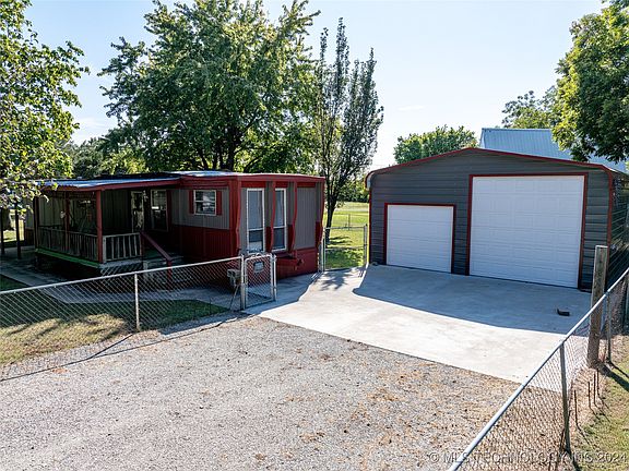 This delightful two-bedroom one-bathroom single wide home is nestled in a friendly neighborhood, just a short golf cart ride away from the scenic Lake Eufaula. Relax on the front porch, all within the safety of a chain-link fence that surrounds the property. For those who value storage or a workshop, the property boasts a spacious 24X40 insulated building with 2 roll up doors. Its concrete floors are equipped with multiple outlets (110V and 220V), making it perfect for storing lake gear or setting up a functional workspace. Property is a short distance from the community boat ramp. Property is being sold as is