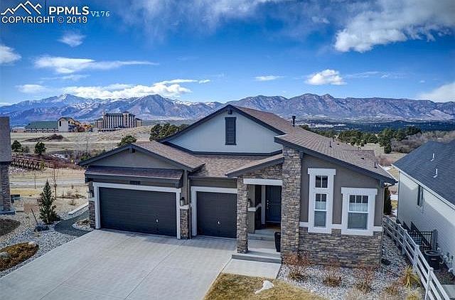 The beautiful modern home with hints of rustic style. The main level features a wonderful flow for entertaining yet a cozy destination for family gathering around the stone fireplace. Step out onto the large deck where you will enjoy views of the Front Range, with some obstruction from newly constructed homes. Step down to the finished basement you will see there is plenty of room for customizing your desired space. Plumbed for a wet bar and wired for surround sound this basement is full of opportunity yet appealing as is. There are 3 bedrooms in the basement and two bathrooms. One of the lower bedrooms features a walk in closet and private bath. The walkout sliding doors lead to the beautifully landscaped yard. The Farm is in northern Colorado Springs, close to shopping, dining, and District 20 schools. This is a neighborhood where families can enjoy a happy and wholesome lifestyle rooted in authentic traditions and enduring values. A place where life is lived abundantly.