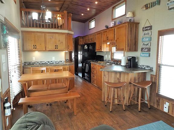 Spacious 2016 Kropf, Lake Series Park Model, located in Smugglers Cove. Inside you'll find everything you need to make this your home away from home. Spacious living room with sleeper sofa, galley style kitchen with full size appliances, one private bedroom, Loft area with a bed and a super loft perfect for an additional sleeping area or storage. Outside features include your own custom storage barn or party house, concrete patio for additional seating, fire pit and outside entertaining. Make an appointment to view this Indian Lake property today. Park is seasonal.. open for use from April 15th - the last weekend of October. Lot Rent is $2,200 per year. Option for dock for an additional fee, once one becomes available. Please visit the Smuggler's Cove Website for more detailed Park Info http://www.smugglerscoverv.com/