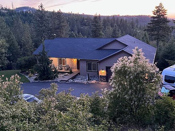 Are you seeking a mountain retreat? This residence is ideally suited to meet your needs. Located just three miles from Interstate 90, it offers the advantages of proximity to town while providing a secluded, wooded sanctuary. The property features ample space suitable for a large family or a multi-generational household. A fully daylight basement with a separate entrance, bathroom, bedroom, and recreational area provides additional space, making it ideal for extended families or rental opportunities. The home has been recently painted and fitted with new carpeting. The garage boasts new epoxy flooring. Both the front and back decks facilitate outdoor enjoyment, offering picturesque views of the surrounding wildlife, as well as spectacular vistas of Post Falls, including Hauser and Newman lakes. The driveway is fully asphalted. Other notable features include a private well, fenced garden area, central vacuum system, water softener, Invisible fence, and a radon abatement system. The spacious main floor encompasses an office/den, family room, and living room, all conducive to comfortable living. The open-concept main living area enhances functionality and social interaction. The master bedroom is notably expansive, featuring a jetted tub and a separate walk-in shower. Access to the back deck is available from both the dining room and master bedroom. Additional amenities include central air conditioning, a fire pit, RV parking, a water feature, pellet stove, Starlink, among others. This home offers numerous features; a personal viewing is essential to fully appreciate its exceptional qualities.