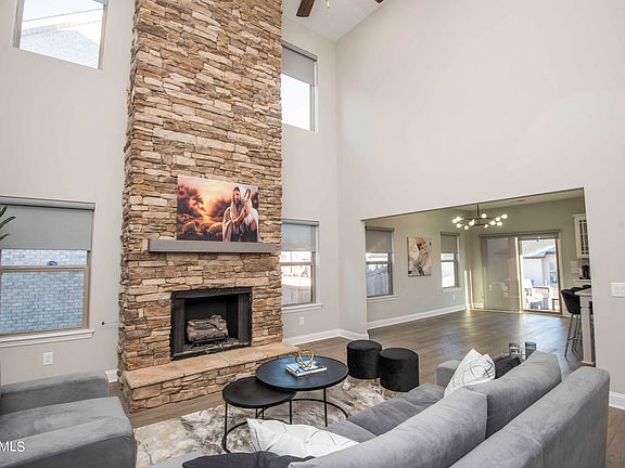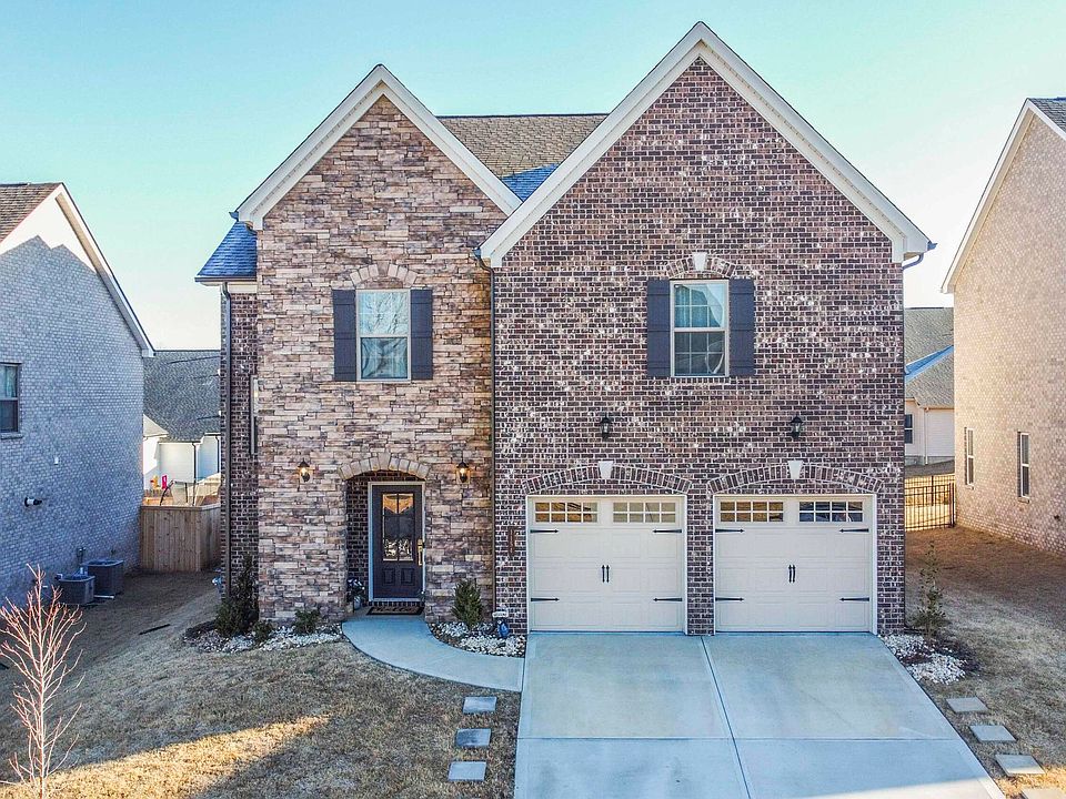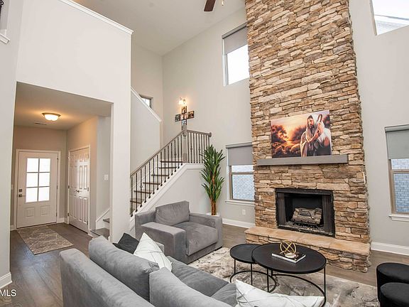 Meet the Wellington Floor plan in Morgan Park. This home is less than one year old and features tens of thousands of dollars in elegant upgrades. The main living area is an absolute stunner, featuring its cathedral ceilings with the second floor overlooking the main living area. The stone fireplace is two stories and is gas. The Kitchen is a ''Gourmet Kitchen'' featuring quartz countertops, upgraded white cabinets, fashionable light fixtures, stainless steel double oven, elegant vent hood, gas cooktop, built in microwave, and advanced refrigerator. The large primary bedroom is tucked away on the main level. The primary bathroom features a tiled shower, garden tub, double vanity, and walk in closet. The upstairs has 3 bedrooms and a ''Movie Bonus Room'', and a custom office space.