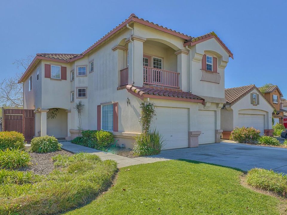 First Time on the Market! Great location within walking distance to Twin Creeks Golf Course, grocery shopping, restaurants and onsite amenities! This beautiful and inviting home, offers high ceilings w/many picture windows to allow for natural light thru-out with a separate, cozy, formal living room with gas fireplace and separate dining area which leads to a spacious backyard with a new privacy fence and side gate. Enjoy family gatherings in the spacious eat in kitchen, family room combo with a breakfast bar, new plank flooring, newer appliances, new large SS sink and more! Upstairs offers a private master bedroom suite with balcony, spacious double vanity, master bath with walk in closet and a separate full bath with three additional bedrooms. Enjoy the views of the greenbelt with walking, jogging or biking trails, nearby park, and close proximity to elementary schools and middle/high schools. Make this wonderful CreekBridge home your Next home Today!
