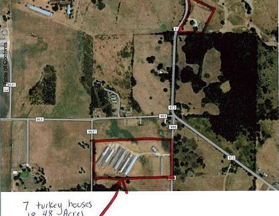 7 house poultry farm on 18 acres with two well rooms and a stacking shed. Poultry houses have green forest water as well as natural gas. Houses currently have butterball contract. All new feed lines and water lines in last 5 years and everything is hung on string instead of cable. The house is located approx .4 miles from turkey houses all on paved county road. The home is a double wide on permanent foundation sitting on 5 acres. Home was bought from Clayton homes in 2019 and put in along with a new septic system. Land around turkey house and the home are all mowed for hay and baled. Land is all flat and mostly smooth.