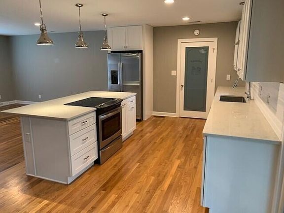 Renovated open floorplan with large island, quartz countertops, shaker style cabinets, wood floors, stainless appliances and enclosed sunroom. No HOA and in flood zone X. Leased thru 4/30/24 but tenant will consider leaving early with 60 days notice. NOTE: Laundry room off of kitchen was originally part of garage so garage depth is shorter than normal.