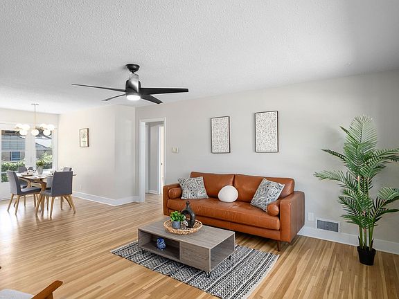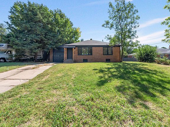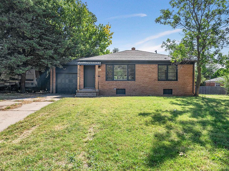 Welcome home to this beautifully updated all brick 2 bed/1 bath/1 car East Wichita ranch and immediately feel the warmth of the stunning thin-planked, multi-toned hardwood floors throughout the main floor. The moment you enter, modern light fixtures make a statement in every room, casting the perfect glow that complements the fresh neutral paint and crisp white trim throughout. Imagine relaxing in the spacious living room, where a remote-controlled lighted ceiling fan adds comfort and the old-school mail slot on the wall offers a charming nod to the home's original character. From the living room, the open flow leads you into the designated dining area, where a stylish gold bubble chandelier creates an elegant space for meals and gatherings. Just steps away, the kitchen awaits—bright and modern with granite countertops, white cabinetry with sleek, extra-long cabinet pulls, and a fresh backsplash completing the luxurious vibe. Picture yourself preparing meals in this space, equipped with a newer stainless steel range and a high-end single handle pull-down faucet that effortlessly reaches every corner of the undermounted stainless steel sink—perfect for channeling your inner executive chef or feeling like you're starring in your own cooking show. As you head down the hall, you'll find the updated bathroom—straight out of a design magazine! The gold fixtures pop against the fully-tiled sparkling white shower/tub combo, creating a spa-like retreat. The built-in linen cabinet with drawers offers that extra bit of convenience and storage you didn’t even realize you needed, while a handy coat closet near the front door keeps your entryway organized. Downstairs, the finished basement opens up endless possibilities. Whether you envision a cozy theater room, a home office, or a non-conforming bedroom, the space adapts to your needs. There’s even a designated storage room to keep things tidy and organized. Step through the door off the dining area or from the attached garage and into the fully-fenced backyard—perfect for entertaining friends or giving the dog room to play. And with a man door in the garage leading outside, everything from backyard barbecues to weekend projects becomes a breeze. Located near groceries, restaurants, and parks, this home offers the perfect blend of modern updates and timeless charm. Ready to make it yours? Set up your showing today!