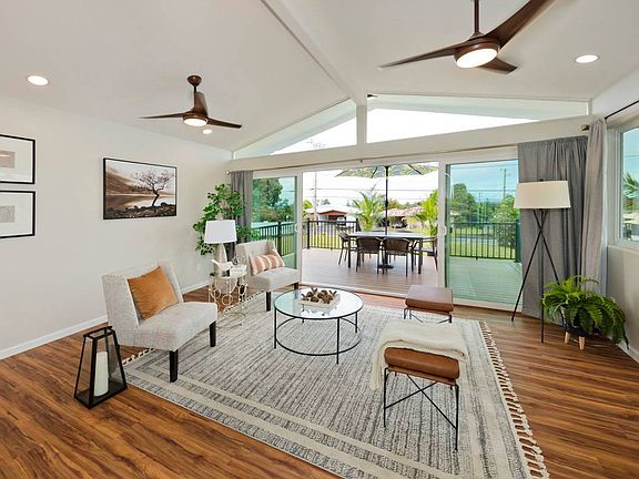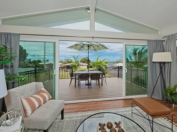 The kitchen has new quartz countertops, stainless steel kitchen appliances, and there's a new washer & dryer in the utility room. The house has a spacious front yard where an additional Ohana/Auxiliary structure may be able to be built. The house is on county water, has an upgraded 200 amp electrical connection, and has a 50amp EV car charger in the garage. It also is 1GB+ fiber optic internet ready with Hawaii Telecom.