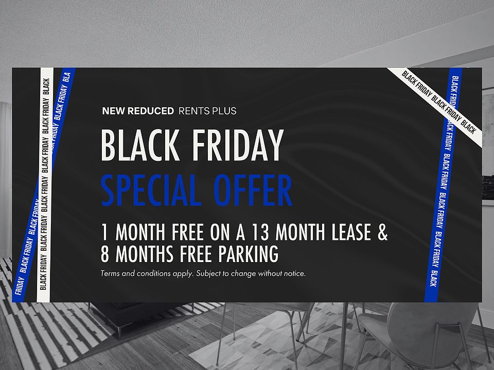 - Special offer! Limited Time Offer: Get 1 Month Free with a 13-Month Lease + Enjoy 8 Months of Free Parking! - *Offer valid on select suites. Additional terms and conditions may apply.