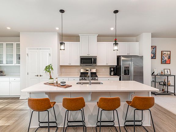 Amazing 3 level, very well maintained 2022 cul-de-sac townhome in SW Durham! THIS HOME HAS THE BEST VIEW AND LOT IN THE SUBDIVISION! This Strauss model boasts 2343 sq ft (largest plan), 3 bedrooms, 2.5 baths, with stainless steel appliances, gas range, quartz countertops, and gray LVP vinyl plank in the kitchen and dining room. The enormous island overlooks an inviting open floor plan into the living room and out to the most AMAZING deck with fully wooded and water views. Tons of natural light flood both front and back of this home and truly feels like a stand alone detached property in compare to other townhomes. Because this home is the largest floorplan, the property stands further towards nature than both attached neighbors, providing a very private and exclusive opportunity unlike others in the row. The lower level has an attached garage and enormous family room / rec room for endless possibilities, opening to a lovely patio space overlooking the same pristine view as above! Bedrooms and laundry upstairs, with two secondary bedrooms on the front of the home and the large private master bedroom with wooded views in the rear. Dual vanities and walk-in tiled shower in the en-suite master bath, and spacious walk in closet. Secondary bath has a shower/tub combo, also with quartz counter on the vanity cabinet. This home has the most tasteful neutral toned updates and an amazing butler pantry cabinet that provides additional storage and counter space when entertaining guests or for day to day enjoyment. It truly is a must see to fully experience the value and space! Very close to shopping, I40, 7 mi from Duke Hospital, 5 mi to Southpoint Mall, 5 mi to RTP, 14 mi to UNC Hospital, 14 mi to RDU, 23 mi to Raleigh. SMART featured doorbell, and app controlled master bedroom fan / thermostats with ALEXA capabilities! Neighborhood amenities include walking trails, two playgrounds and tot lot, volleyball, dog park and pickup stations.