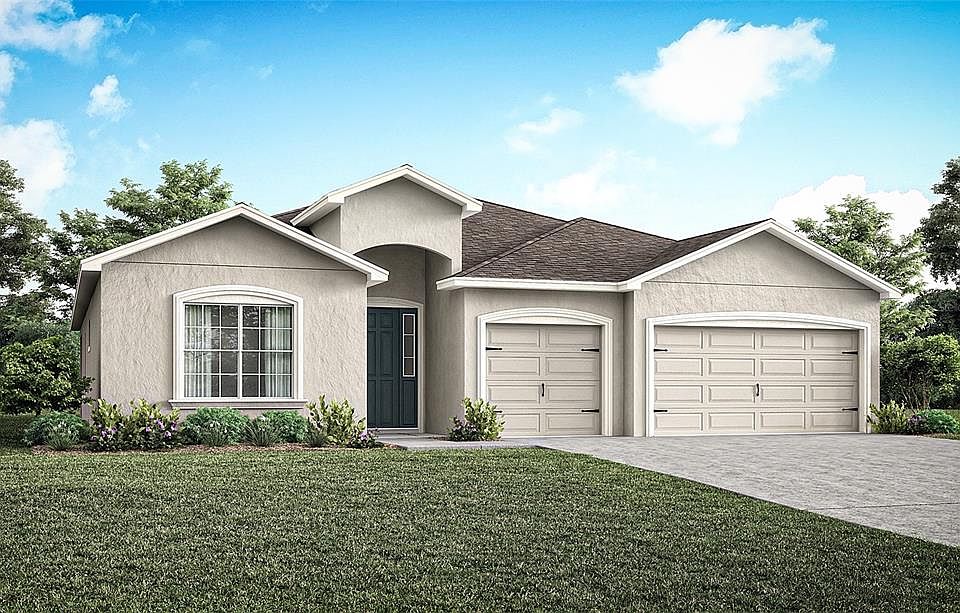 New construction home with 2487 square feet on one-story including 4 bedrooms, 3 baths, and an open living area with den. Enjoy an open kitchen with Silestone countertops, Samsung stainless steel appliances, and a spacious breakfast bar, fully open to the dining café and gathering room. The kitchen, living area, laundry room, and baths include luxury wood vinyl plank flooring, with stain-resistant carpet in the bedrooms. Your owner's suite is complete with a walk-in wardrobe and a private en-suite bath with dual vanities, a tiled shower, garden tub and a closeted toilet. Plus, enjoy a covered lanai, 3-car garage. Custom-fit window blinds, architectural shingles, energy-efficient insulation and windows, and a full builder warranty. “Please note, virtual tour/photos showcases the home layout; colors and design options in actual home for sale may differ. Furnishings and décor do not convey.