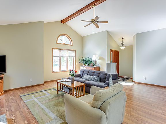 This 4 bed, 3 bath ranch will not disappoint. Home has new flooring through out, all baths have been updated as well. The open feel of the main living space greets you as you enter. The updated kitchen features a glass backsplash and newer graphite GE appliances. The finished lookout basement boast a large family room, 4th bedroom, office, full bath, workshop space, & loads of storage. The 2.5 car attached garage is finished & features an electric heater. With a .4 acre lot this spacious yard is ideal with large deck that is partially covered, patio and firepit areas entertaining will be a breeze. Truly a must see! Don't miss out!
