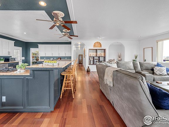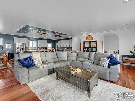 Are you ready to escape the hustle and bustle of city life and have an east commute to Denver and DIA? Are you dreaming of a custom home with mountain views and sitting on your deck in the evening watching the sunset over the Rockies? If you answered yes, then THIS is the place for you! Come out to Watkins and enjoy the peace and quiet of the country living with the room to enjoy all your outdoor activities: horseback riding, ATVs, dirt bikes, gardening and animals! This beautiful property is situated on 35 acres in Watkins Ranch, a private community of only 13 custom home lots. This property has a quarterly road fund of $150 a quarter, and no HOA. Located outside the city with a sales tax base of 3.5%. The is an onsite RV pad with electric, water & septic. The property allows for an ADU to be built, perfect for family or a guest house. Mineral rights are negotiable. Pasture is smooth brome grass & rye, Tractor with multiple implements is also available, as well as furniture.Step inside this home & you will be greeted by a large entry way which opens into a large great room & kitchen where you can host large gatherings and create unforgettable memories. The kitchen has an abundance of cabinet space along with a large island, granite countertops, gas cooktop and spacious pantry. The cabinets have recently been updated. Cherrywood throughout create a warm & inviting feel throughout. The entire main floor & basement are heated with radiant heating. Down the hall are three bedrooms, with one being a large master suite. The finished basement is open and allows for your own creativity to customize it exactly how you want, there is a rough in for a bathroom as well. The entire home boasts 10 foot ceilings, both on the mail level and in the basement. The 4-car garage provides ample space for your vehicles and storage needs. Wired for 220, the large air compressor, workbenches and garage refrigerator are included. This property has a brand-new roof, installed in Aug 2023.