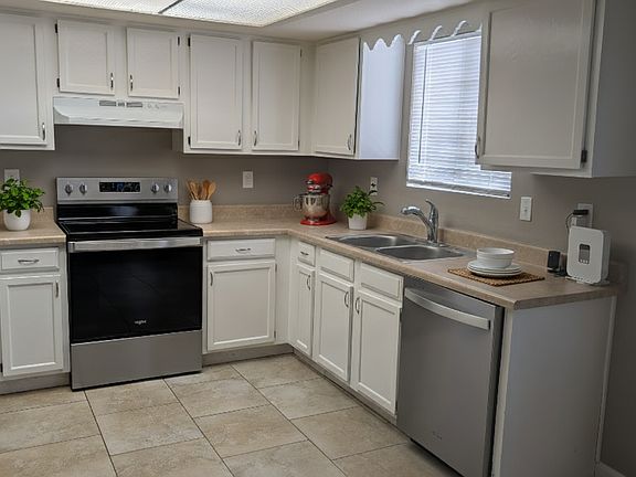 The kitchen is equipped with stainless steel Whirlpool appliances, including a glass-top stove, refrigerator, and dishwasher. **Washer and dryer are also included.** No need to bring your own.