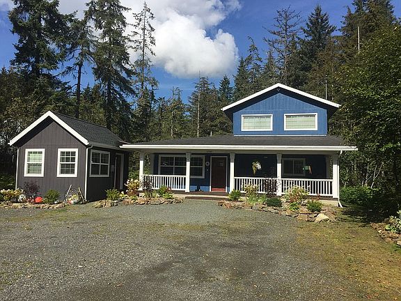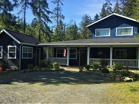 Cottage style home plus guest cabin, greenhouse, and landscaped yard with a lovely private view of the muskeg and rainforest.
