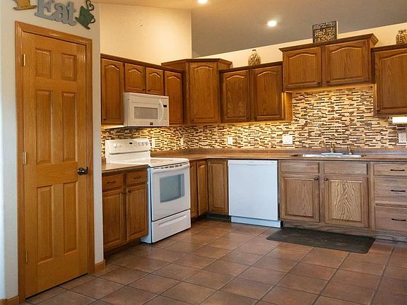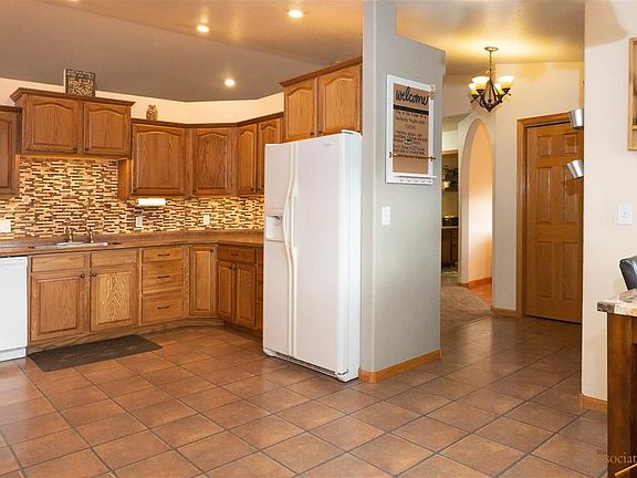 Enjoy this spacious Ranch style home with gorgeous architectural flair throughout. The kitchen provides well maintained oak cabinetry with crown molding, a stylish backsplash, ample counter space, a built in pantry, drop sink and breakfast nook. Located off the kitchen is a formal dining room with a beautiful round arch opening. In the nearby living room, the slate stone corner gas fireplace and vaulted ceilings provide a cozy space to entertain. The master suite is situated right off the living room. The master suite provides a 4 piece bathroom set with a corner jetted tub, and large walk in closet. A second bedroom, full bathroom and laundry room complete this level. Downstairs offers an oversized family room with an additional game room and pool table, which provides the perfect space to host gatherings. Three spacious bedrooms, full bath and large utility closet complete this level. Seller is a Licensed Real Estate Agent.