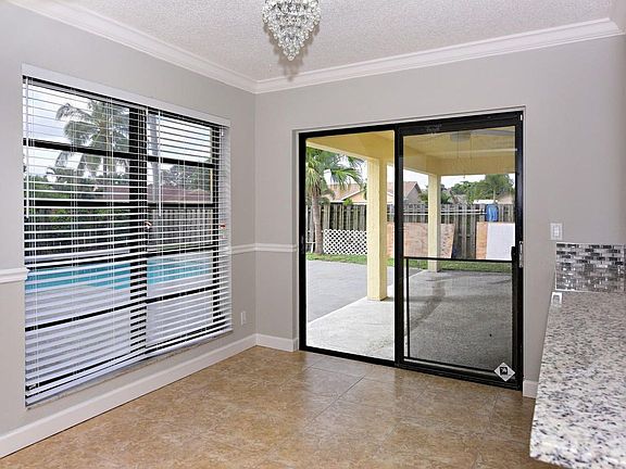 Beautifully renovated. New kitchen with granite and stainless steel appliances. New bathrooms, lights, ceiling fans and washer/dryer. Master bedroom and bathroom windows are hurricane impact. Repainted inside and out. New pool tile, cool deck and patio roof. Large corner, fenced lot with pool. Tile floors throughout. Sliding doors open to patio/pool from master bedroom, dining room and breakfast area. Split bedroom plan. NO HOA.