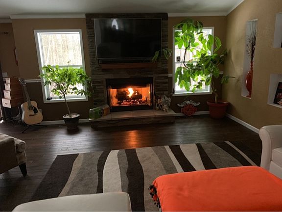 There is so much to love about this home. The quiet, wooded setting has an open floorplan perfect for entertaining and still just a short drive away from groceries, restaurants, coffee shops and highways. This single family dwelling has a foyer with an open floor plan consisting of a spacious living room, dining room and kitchen with cathedral ceilings. A large kitchen features black appliances, loads of cupboard & counter space and large eating area with sliding door to the deck. The kitchen/eating area is open to the family room w/vaulted ceiling and a wood burning insert gas log fireplace with cottage stone surround. The main floor master suite has walk-in closet, double sinks and jet tub with a free standing shower. The main floor also has two additional bedrooms with walk in closets. Front bedroom features a large bay window. Main floor also consists of a second full bathroom and has main floor laundry with plenty of pantry space. Additional hook up for washer and dryer available downstairs. Attached 3 car garage with finished insulated wall with side utility door. Walk out basement has 9 foot ceilings and is framed for a bathroom and additional bedroom. Basement features beautiful French doors that walks out to 10 acre with lots of wildlife. Less