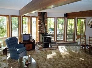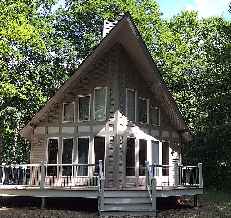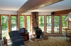 Prow Front Chalet; 2 Lots; Full Basement; 3 Bedrooms; 1.75 Baths; Wood stove, Beam Accents, Low-maintenance PVC deck (new 2016). High efficiency 3 zone mini-split heat pump HVAC heat pump system (new 2018), with backup baseboard heat; and baseboard system on separate meters for electricity discount. New kitchen, laundry room, and living room flooring (2023). Lakes of The North Member Amenities Include: Deer Run Golf Course; Settings Restaurant; Beaches With Boat Use; Clubhouses & Pool; Campers Village+ Pavilion; Airport; Winter Sports Center/Cross Country Skiing + Skating; DNR Snowmobile Trails.