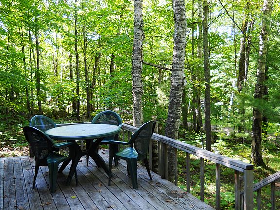 Cabin with over 5 wooded acres and a separate 60' lake front lot on 340 acre Thunder Lake. Cabin includes all furnishings, appliances, lake front dock. Pontoon boat is negotiable. Large eat in kitchen with bar, gorgeous wood burning fire place, 32' deck along length of cabin, spacious bedrooms with bath. Lake lot is 60' wide with a 10 x 12 storage shed. New steps and railings to lake and lots of room to improve with decking and etc..Thunder lake is spring fed and is known for the fishing in summer and winter. Only 1/3 of the lake is privately owned and the rest of this beautiful lake is National Forest. Kayaking is wonderful on this lake. Some of the best 4-wheeling and snowmobiling area around that is still undiscovered. Located in the Hiawatha National Forest only 25 minutes to Manistique and 40 minutes to Munising this undiscovered paradise is a treasure and delight.