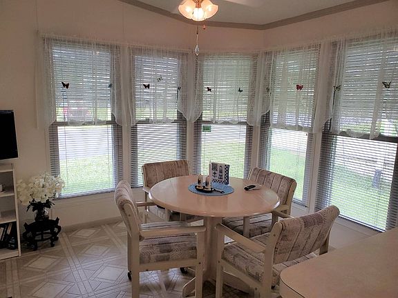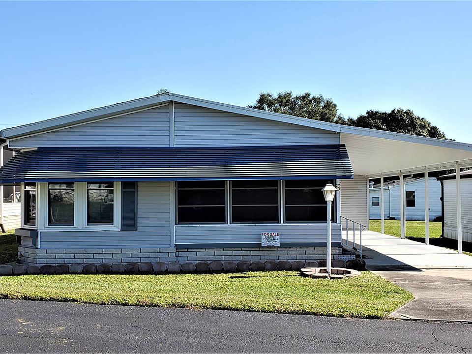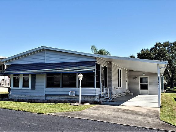 THIS HOME IS ON LEASED LAND WITH A MONTHLY LOT RENT OF $475. LOVELY 2 BEDROOM/ 2 BATH HOME WITH 1512 SQ FT OF LIVING SPACE IS MOVE IN READY. NEWER PLUSH CARPET, PAINT AND WINDOWS ARE JUST A FEW OF THE THINGS THAT MAKE THIS HOME A PERFECT HOME FOR YOU. WALKING DISTANCE TO THE POOL AND CLUBHOUSE. READY FOR IMMEDIATE OCCUPANCY. FISHERMAN COVE IS A 55+ COMMUNITY THAT SITS ON LAKE PASADENA IN DADE CITY. THE LOW LOT RENT COVER SEWER AND TRASH. WATER AVERAGES ABOUT $13 A MONTH AND LAWN IS HOMEOWNER RESPONSIBILITY. WINDOWS ARE NEWER AND EASY TO CLEAN. ALL WINDOW ARE REMAINING. KITCHEN LARGE, BRIGHT AREA WITH PLENTY OF STORAGE, DOUBLE SINK WITH VIEWING WINDOW, GARBAGE DISPOSAL AND REVERSE OSMOSIS FILTRATION. THIS KITCHEN HAS LINOLEUM FLOORING, PANTRY CABINETS, BUILT-IN RADIO (CASSETTE TAPE DOESN'T WORK), LOTS OF COUNTER SPACE. THE EAT-IN AREA IS 6'4" X 9'7" WITH A GORGEOUS BOWED WINDOW, LIGHTED CEILING, LINOLEUM FLOORING AND A DOOR THAT LEADS TO THE FLORIDA ROOM. APPLIANCES INCLUDE A FRIGIDAIRE SMOOTH-TOP STOVE, WHIRLPOOL SIDE BY SIDE ICE MAKER REFRIGERATOR AND A WHIRLPOOL DISHWASHER. DINING ROOM 8 X 12 NICE SIZE DINING ROOM THAT CAN FIT JUST ABOUT ANY TABLE. IT HAS A NEWER LIGHT FIXTURE AND NEWER PLUSH CARPET. LIVING ROOM 13 X 19'3" HUGE, OPEN SPACE WITH NEWER PLUSH CARPET, CEILING FAN AND A FRENCH DOOR THAT LEADS TO THE FLORIDA ROOM. IT MUST BE WONDERFUL TO OPEN THE DOOR AND HAVE THE FRESH AIR COMING IN FROM THE FLORIDA ROOM. MASTER BEDROOM 13 X 15'5" KING SIZE BEDROOM WITH CARPET, LIGHTED CEILING FAN AND AN ENTIRE WALL LENGTH MIRRORED CLOSET. LOTS OF ROOM!!! ALSO, IT IS NICE AND QUIET, AS IT'S IN THE BACK OF THE HOME. MASTER BATH LARGE DOUBLE SINK VANITY WITH STORAGE, MEDICINE CABINET, NEWER HIGH RISE TOILET, WALK-IN SHOWER WITH 2 BENCHES AND A GRAB BAR, CERAMIC TILE FLOORING AND A GARDEN TUB. BEST OF BOTH WORLDS. GUEST BEDROOM 10'8" X 11 QUEEN SIZE BEDROOM WITH CARPET, LIGHTED CEILING FAN AND A DOUBLE WALL CLOSET. THERE IS A SEPARATE FUSE BOX THAT POWERS THE OUTLET OUTSIDE THE HOME FOR A GENERATOR. VERY UNIQUE AND GREAT IDEA. MAIN BATH SINGLE SINK VANITY WITH STORAGE, MEDICINE CABINET, TUB/SHOWER WITH GRAB BAR, HIGH RISE TOILET, CERAMIC TILE FLOORING, BRIGHT SKYLIGHT AND LINEN CABINETS AND DRAWERS. LAUNDRY ROOM OFF THE HALLWAY WITH WHIRLPOOL WASHER AND DRYER AND STORAGE ABOVE, THERE IS A AREA NEXT TO IT THAT CAN FIT A FOLDING TABLE, STORAGE CABINET ETC. YOU ALSO HAVE A BUILT-IN DESK WITH EVEN MORE STORAGE AND A HUGE LINEN/UTILITY CLOSET. NO SHORTAGE OF STORAGE HERE. FLORIDA ROOM 9'9" X 12'9" FRONT OF THE HOME WITH VIEWS OF THE LAKE, CEILING FAN, INDOOR/OUTDOOR CARPET, ROLL DOWN BLINDS, TINTED VINYL WINDOWS, HEAVY ANDERSON DOOR AND 2 SETS OF FRENCH DOORS THAT LEAD TO THE KITCHEN AND LIVING ROOM. EXTERIOR 2 CAR CARPORT AWESOME BACKYARD, LOTS OF ROOM NEAT AND CLEAN METAL AWNING ON THE FRONT OF THE HOME CLOSE TO CLUBHOUSE ROOF IS UNKNOWN HVAC IS SERVICED FISHERMANS COVE IS A LOVELY PARK LOCATED IN DADE CITY. LOT RENT IS $450 A MONTH AND THAT INCLUDES SEWER AND GARBAGE PICKUP. WATER AVERAGES ABOUT $13 A MONTH. THE PARK OFFERS A HEATED POOL, SHUFFLEBOARD COURTS, POOL TABLE AND MUCH MORE. BEAUTIFUL VIEW OF A LAKE IN BACK GROUND. A WALK WAY LEADS TO A PIER ON THE LAKE WITH A SCREENED IN AREA TO SIT. FISHING IS EXCELLENT WITH MANY DIFFERENT FISH TO CHANGE, IT IS NOT A CATCH AND RELEASE, FISH IS GOOD ENOUGH TO EAT. POP INTO HISTORIC DADE CITY AND SHOP IN THE MANY ANTIQUE SHOPS. LOCATED NEXT TO SHOPPING, MEDICAL AND A SHORT DRIVE TO MANY ATTRACTIONS. All listing information is deemed reliable but not guaranteed and should be All listing information is deemed reliable but not guaranteed and should be independently verified through personal inspection by appropriate professionals. American Mobile He Sales of Tampa Bay, Inc. cannot guarantee or warrant the accuracy of this information or condition of this property.