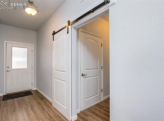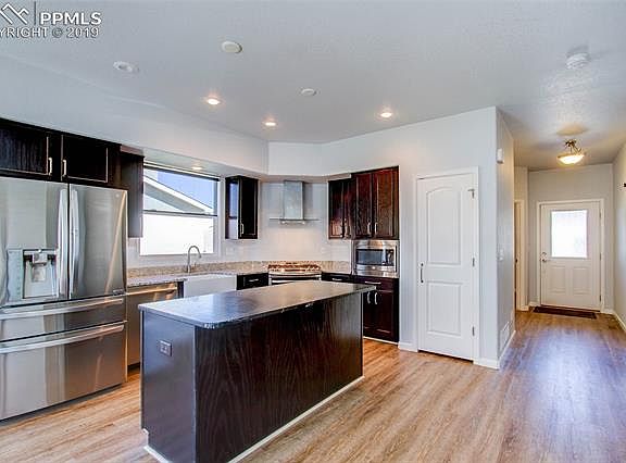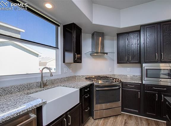 Looking for an ADA-Compliant ranch home on a cul-de-sac lot? Located in the convenient Courtyards at Woodmen Hills West, this move-in ready home has four bedrooms and three full baths. As you enter, you'll notice gorgeous waterproof luxury vinyl flooring throughout the main spaces. The large kitchen includes stainless steel appliances (including slide-in gas range), maple cabinetry, granite countertops, and backsplash. Open concept living makes the first floor of this beautiful home perfect for entertaining! The Master Suite has a large walk-in closet and 4 piece bath. Also on the main level is the study/home office, which would make a great second main-level bedroom. Downstairs is the finished basement with two additional bedrooms, one full bath, and a large recreation room. All doors are three-feet wide throughout the home. You'll enjoy the benefits of front yard landscaping and backyard fencing, which is maintained by the HOA, and maintenance-free astroturf in the back yard makes this home truly ready for year-round outdoor entertaining! *Woodmen Hills Metro District is billed based on usage and amounts may differ*