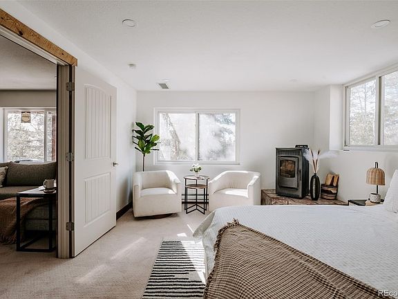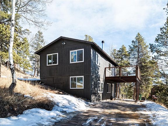 Cozy mountain modern living with incredible views of Pike's Peak! With a new roof, deck, carpet, baseboard heaters and paint, as well as newer appliances and windows, you're ready to move in and start living your best mountain life! Snuggle up near the wonderful Jøtul cast-iron wood-burning stove, enjoy a homemade latte while taking in morning views of the mountains, and stop to enjoy the Alpenglow while savoring a glass of vino. You'll love hosting garden-to-table dinners al fresco on the instagram-ready magnificent deck, featuring the harvest from your greenhouse and raised beds, too. This 3 bedroom, 2 bath home has everything you need: situated on a gently sloping, wooded half acre lot, you have plenty of space and privacy combined with a 15 min commute to co-working space, grocery markets, restaurants, gas, convenience and liquor stores, as well as a quick 45 min drive to Denver. The sturdy shed provides extra storage and a space for your tools and hobbying, and of course you'll also love easy access to nearby trails, ski resorts, and more. You are going to LOVE living in Conifer!
