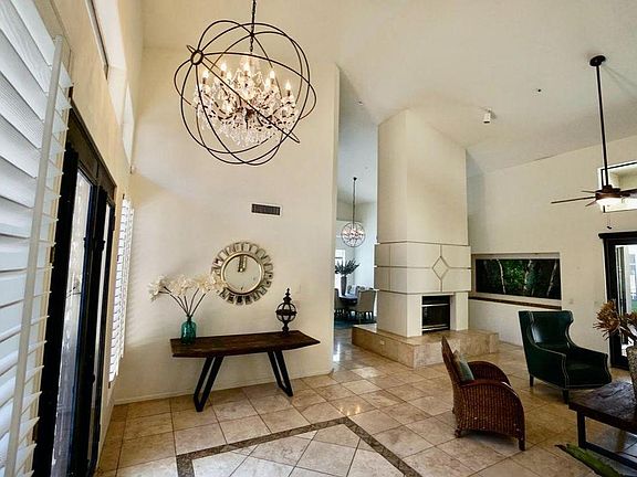 Don't miss this soft contemporary home perfectly situated in the desirable Scottsdale Country Club East Nine. Private Guarded Gate. This home offers grand scale rooms, 16 foot ceilings, expansive view windows, plantation shutters, beautiful travertine flooring, custom lighting, & many more upgrades. With over 3,300 square feet the Split floor plan presents 4 large bedrooms & 3 baths. The large master suite features stunning alder wood cabinetry, a soaking tub, walk-in shower, and a large walk-in closet. The formal living room is highlighted with an alluring 2 sided fireplace and wine bar. A chefs kitchen showcases slab granite counter tops, breakfast bar, & stainless steel Electrolux appliances. Backyard features a private pebble-tec pool & spa with custom water feature. Don't miss this on