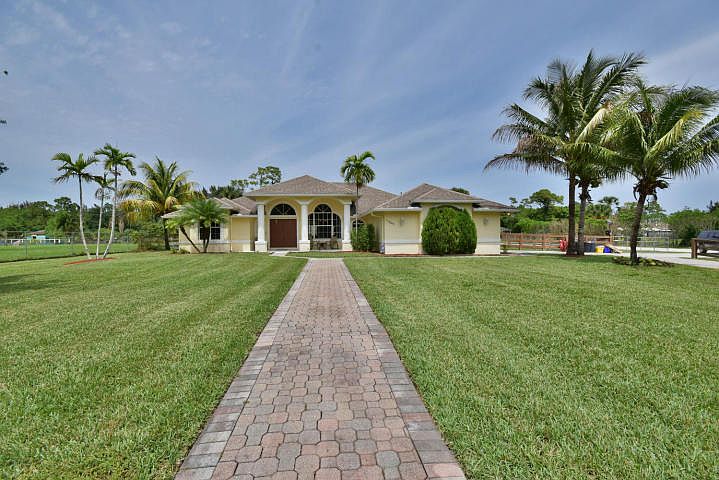 Prop ID # 04 - 002 4/5 For more info, contact Rent 1 Sale 1 Realty at 561-469-7422 or for a free Property Search, go to www.R1S1.com Gorgeous waterfront home on an acre+ fenced corner lot in THE ACREAGE. Features a concrete block detached workshop with electric and water, private heated pool and jacuzzi, and 4 car garage. Inside has been completely upgraded including granite counters and stainless appliances in the kitchen. Master bath has a roman tub, separate shower, and dual sinks and vanities. A must see. No HOA, bring your boats, trailers, RV's and trucks. Listing courtesy of Beach Town Real Estate LLC