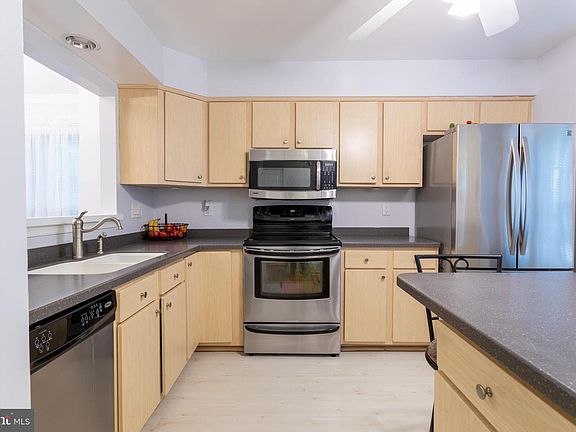 Welcome to this move-in ready end unit townhome with updates galore. Enter on the main level and be greeted by hardwood floors and an updated kitchen with SS appliances and a peninsula eat-in island in the front of the home. Main level features half bath, open-concept living and dining, wood-burning fireplace, crown molding, chair railing and updated light fixtures. New Anderson doors lead out to a fully hardscaped, low-maintenance, fenced-in rear yard with two storage sheds! Upper level features three generous-sized bedrooms and a large shared hall bath with separate tub/shower. Lower level features den/office that could be used as a bedroom, a living space, full bath with shower, and a huge laundry room that is finished with extensive storage cabinet space. Potential for in-law suite! Close proximity to 355 / 270 commuter routes (cannot hear the road noise with the new windows), Milestone and Germantown Town Center shopping, and plenty of restaurant options. Updates by current owner include fence (2012), patio (2013), windows (2013), sheds (2014), rear door (2018), interior and closet doors (2018), under cabinet and closet lighting (2020), fresh paint (2020) and new front door (2020). Home and patio have recently been pressure washed and carpets professionally cleaned. Pride in ownership shows with this one. All you have to do is move in!
