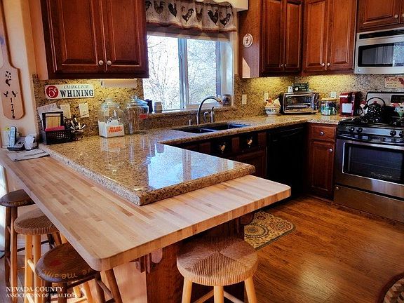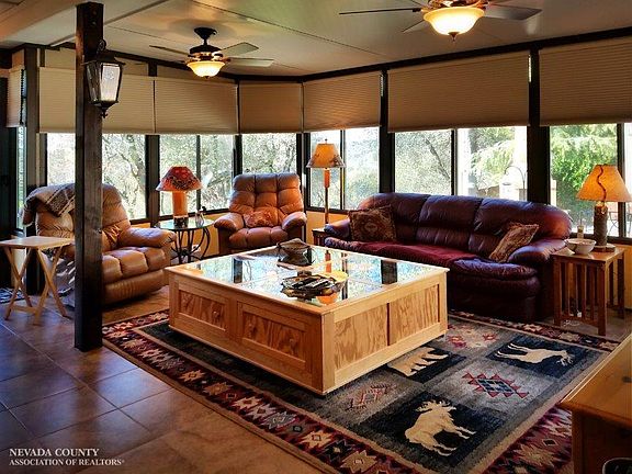 Old World style. Brick with stone accents. Sunny, usable & private acreage w/2nd bldg. site. Surprising bridge entry over pond causes you to pause and enjoy the gold fish, the Koi and the relaxing front patio. Enter the Great Room w/vaulted wood beam ceilings, charming kitchen and large breakfast nook w/updated appliances, granite and beautiful laminate flooring. Master bedroom and bath w/separate tub and shower exceed your expectations. 2nd bedroom has Murphy twin beds, great for the grand kids. Very inviting 330 SF Sun Room w/European windows & doors...and don't forget the guest quarters attached to the 2 car garage. RV pad and hook ups. Chicken Coop, fruit trees, fenced garden w/raised beds. Add to this an open fire pit and all that's needed is your kids favorite tent. Back patio w/free standing wood burning stove ads warmth to a chilly summer evening.