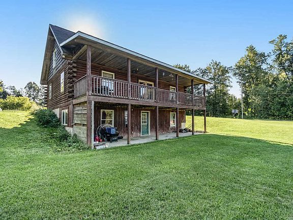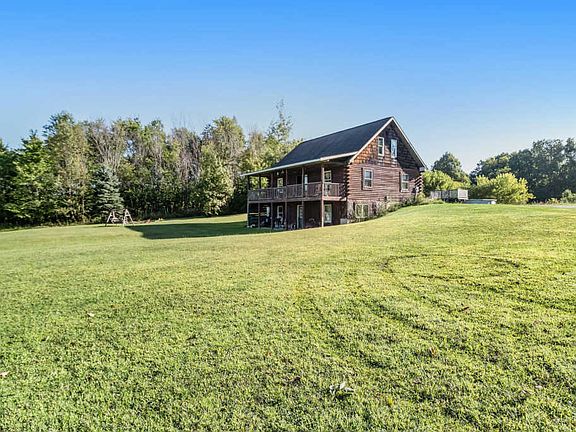 Log built home with an open floor plan on 16 private rolling, wooded acres perfect for the family that enjoys the outdoors. Acreage was previously farmed and could easily be used for animals or crops again. 3 bedrooms, 2 baths with a walkout basement for you to finish as you wish. Home is set up for an outside woodburner. Property includes a 2 car garage/pole building. Peaceful country living and beautiful views yet still convenient to M-37.