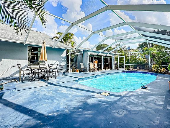 STUNNING! This 3 bd, 2 bth POOLHOME boasts a COMPLETELY REMODELED KITCHEN, NO HOA & NEWER ROOF, located in an A-RATED SCHOOL DISTRICT in the highly desirable neighborhood of Eastwood. From the moment you enter, you will be wowed by the architectural details, spacious layout & tranquil backyard/pool views from almost every room & you instantly know this is the one. The spacious open floor plan features vaulted ceilings & gorgeous wood beams giving this home a bright and airy feel. 2 living/dining areas w/ UPGRADED FLOORING & glass atrium surround a CHEF'S DREAM KITCHEN featuring QUARTZ counters, subway tiled backsplash, soft-close cabinetry, pantry, barstool seating & NEWER dishwasher. The master suite enjoys patio sliders, walk-in closet & en-suite bath w/ dual-sink vanity & oversized walk-in shower. The addt'l 2 bedrooms both have large closets (1 w/walk-in) & get to enjoy a 2nd UPGRADED full bath w/ stone vanity & shower/tub combo. The private backyard oasis is ideal for entertaining family & friends on the covered/screened patio w/ pool & spa & the fenced in yard allows kids & pets to run around and play. Addt'l upgrades include NEW pool pump, NEWER A/C, smart alarm system, NEW gutters, NEWER washer/dryer & 2020 ROOF w/ 10 yr transferable warranty. Eastwood is a family-friendly neighborhood located in an A-RATED SCHOOL DISTRICT w/ NO HOA & close to dining, shopping, and the world-famous Wellington Equestrian Center. This is Florida living at its finest!