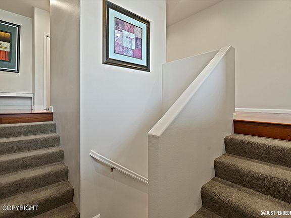 South Anchorage townhome located on a peaceful cul-de-sac. Unobstructed mountain and wetland views from the living, dining, covered deck, owner's room & ensuite make this a wonderful setting to call home. There are beautiful details in the construction - cherry cabinets, solid surface counters, & engineered wood floors. Private elevator, storage galore & oversized garage are just added bonuses.