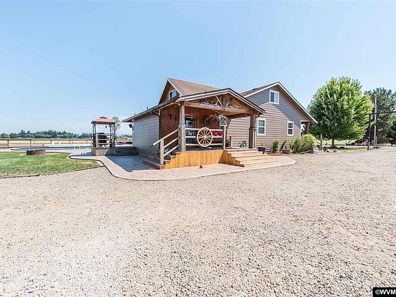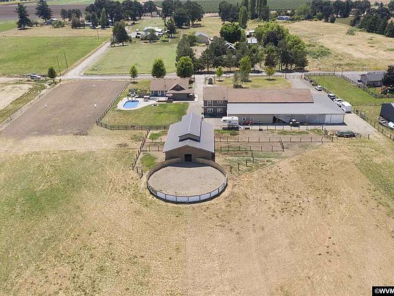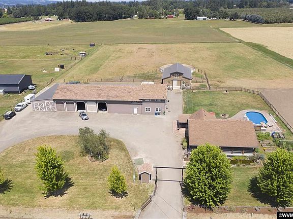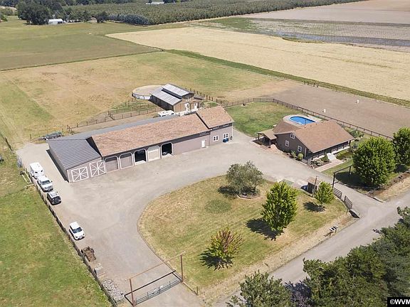 Accepted Offer with Contingencies. Horse property/Country living minutes from I-5 w/access to Ptld or Salem. Beautiful Mt Hood view. 7 stall barn (2018), 6 turn out areas, 60 ft rd pen usable all year. Separate feed rm/heated tack rm w/restroom, fenced/cross fenced.(Main Outbuilding 2011 has 120x40 concrete area w/5 bay doors, 24x40 work area, 4400 sq ft lean too off shop w/810 sq ft concrete storage areas, separate 200amp electrical srvc to shop. Potential for additional living areas,) New pump house 2019. Koi Pond. and much more! MUST SEE!