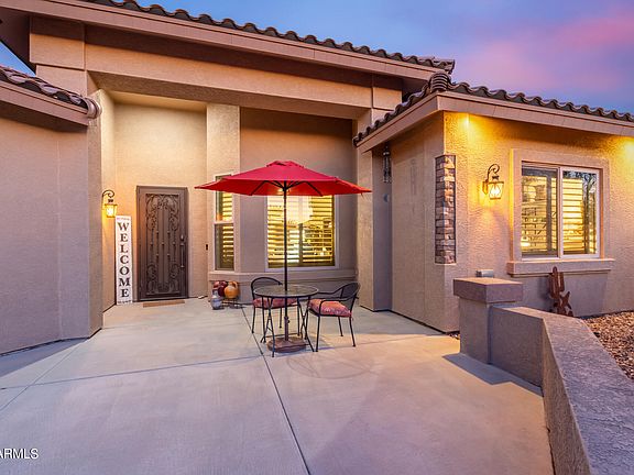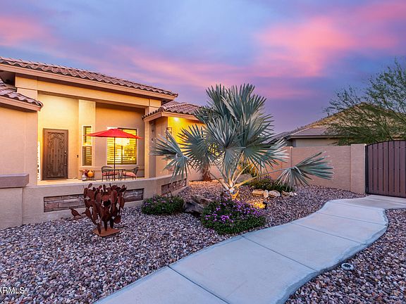 Gorgeous home with every upgrade imaginable! Resort-like backyard with mountain views from the elevated deck/purgola/firepit area. Must see in person! Huge extended 3-garage. Get an up-close look inside to find wood-look tile flooring, 3 bed PLUS den, plantation shutters, and a dedicated den ideal for an office/study. Sliding glass doors to the back patio from the great room, merging the indoor with the outdoor living and making entertaining a bliss! Spotless kitchen is equipped with recessed & pendant lighting, upgraded cabinets, walk-in pantry, SS appliances, glossy granite counters, tile backsplash, island with a breakfast bar. Romantic main suite boasts an elegant ensuite with two vanities, and a fabulous jacuzzi tub and a private stall. One of the nicest homes in SSV, by far! Fall in love with the spacious backyard, offering a covered patio, artificial turf, gazebo, and incredible mountain views! A must-see gem!