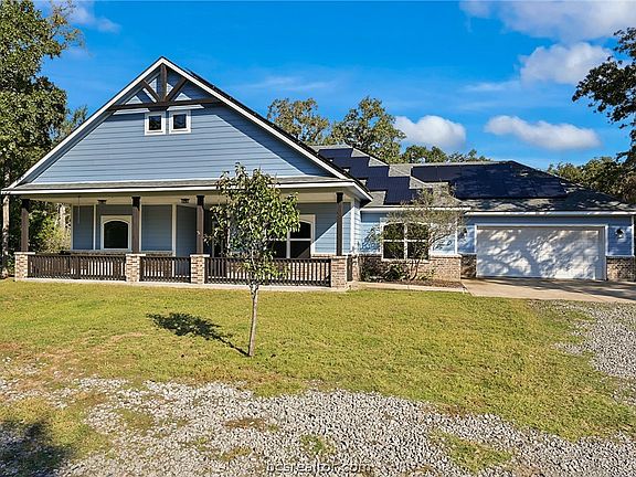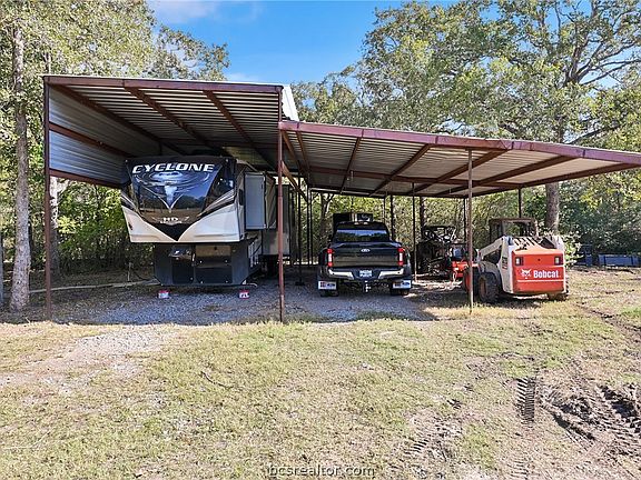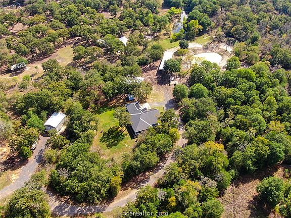 Peaceful country living on 9.72 private acres with paved road frontage in Iola! 3 BD 2 BA w/ over 2000 sq ft of immaculate living space. Built in 2016, split bedroom plan with open kitchen, dining, and living area, granite countertops, walk-in pantry, huge eating bar, and abundant storage throughout. Master suite boasts two sinks, separate tub shower and two closets. Two guest bedrooms share a hallway bathroom. Hard surface floors throughout the home. You will want to spend all of your evenings on the screened back porch with sliding vinyl panels to make the back patio enjoyable year round! Solar panels and spray foam insulation provide for the most energy efficient living! Metal workshop (approx 24'x35') built in 2022 with spray foam insulation, two 10'x10' bay doors and 2 walk through doors, 80 gallon compressor, and a 2-post car lift. Large pond that is approx 12' deep and has a covered awning with water and electric hookups overlooking the pond and back property. RV and boat/trailer covered storage (approx 48' x 40') with 50 amp electrical service. Additional pad site for a future guest house has full utility hookups available: water, conventional septic system, and electric meter. This property is gated at the entrance, perimeter fenced with cleared walking or side-by-side drive paths throughout. Fiber internet installed (MidSouth Fiber), paved road frontage, Wixson Water, and aerobic septic system. Conveniently located just 25 minutes to Bryan/College Station.